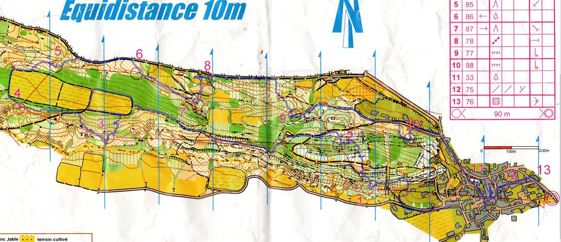 Et ma course ! en regardant la carte trace bleu vous verrez une erreur au départ dans le village (Pour Didier .Fontcouverte et pas Fontfroide !!!)et surtout un jardinage (eh oui ..on peut jardiner dans une terre hostile) sur la balise 2 ..et je sais pourquoi.il faudra retenir la leçon .En sortant de la petite falaise j’ai pris un azimut avec comme point d’appui un muret perpendiculaire a un autre juste avant la balise ..facile !sauf que au dernier moment je me suis dit qu’en avançant un peu je pouvais descendre perpendiculairement à la piste .Stratégie intelligent réfléchie …..et c’est parti..sauf que un peu plus loin. J’ai foncé mais avec l’azimut réglé a la sortie de la falaise …et qu’arriva t il ? je trouve un muret et en route pour ….n’importe quoi ..j’en suis quitte à remonter sur la piste, a me recaler et a aller regarder avec amour (ou haine) la balise qui m’attend légèrement penchée avec un air coquin et a écouter le doux Bip de la rencontre de ma puce avec le boîtier. Ensuite ça s’est déroulé correctement avec une option qui était de suivre la végétation.