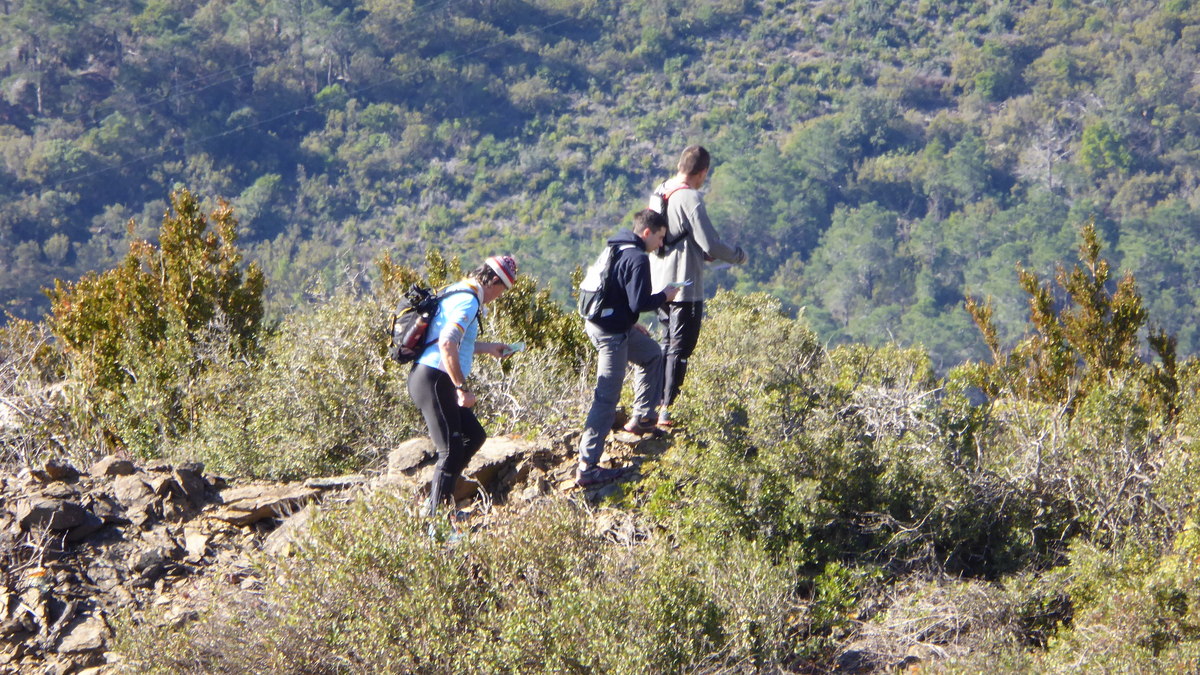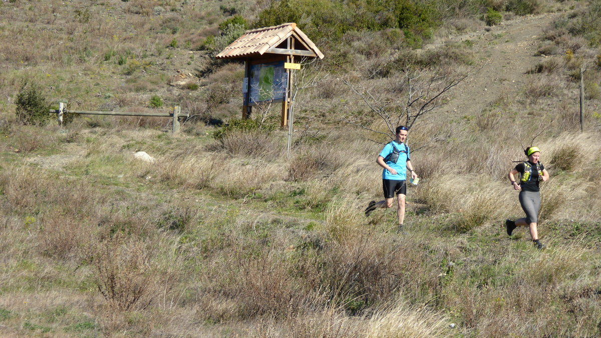 Après un dernier raid en demi teinte à cause de plusieurs erreurs de navigation, un petit entraînement de CO ne pouvait pas faire de mal, ça tombe bien le beau temps est au rdv du coup direction Maury en contrebas du château de Quéribus, le cadre est juste magnifique pour un circuit de 27 balises. Le départ est donné on s'organise et on décide de partir dans le sens inverse des aiguilles d'une montre, direct une montée bien raide nous fait accélérer le cardio, en haut la première balise et c'est parti on enchaîne les balises sans erreur d'orientation certaines ne sont pas évidentes tellement elles se fondent dans le décor, n'est ce pas Christian. La balise 49 arrive et on commence à bartasser d'ailleurs un sanglier sort du maquis juste derrière notre passage, je regrette de ne toujours pas avoir les guêtres je vais finir toute rayée ! Du coup en bordure du canal je fais trempette ça rafraîchit et on finit le parcours en courant, on est quand même prudents dans la descente vers le parking ça serait dommage de se blesser maintenant. La boucle est bouclée en un peu moins de deux heures, on a bien mérité un petit resto ! Minus et Cortex.![]()