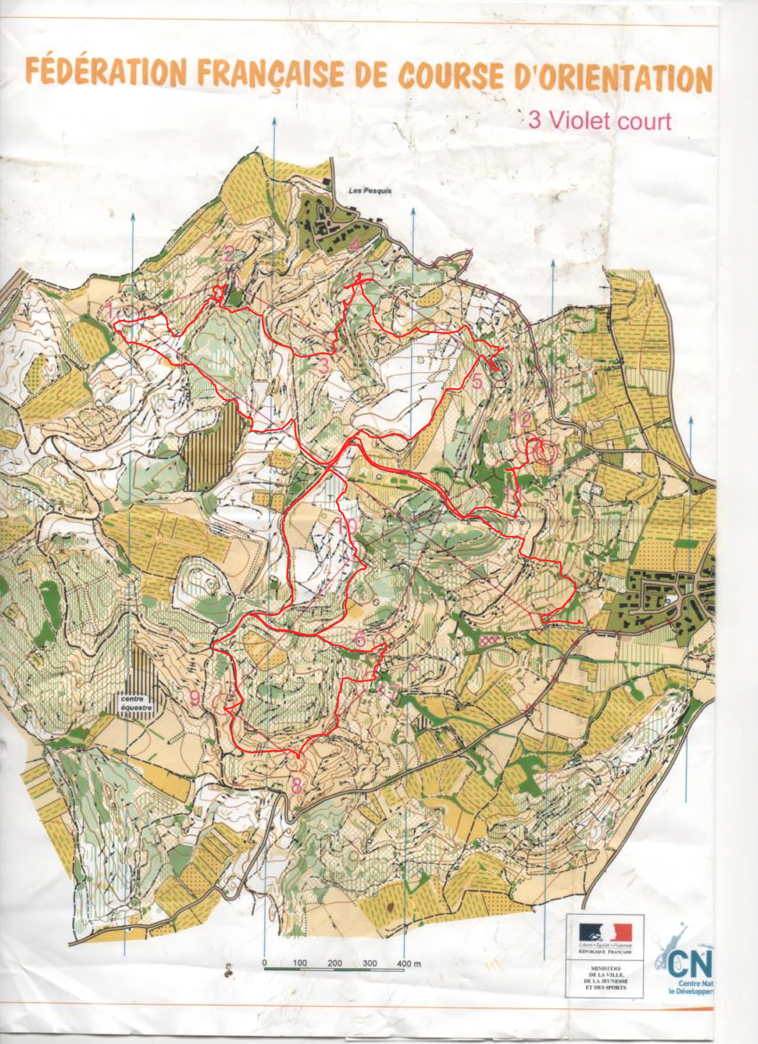 5 bips fatidiques ou libératoires. Prise de cartes …Eh là. C’est du A3 .c’est grand .1/10000. Les symboles. c’est petit !!Balise départ : facile il y a de la rubalise mais elle va vers le nord. Falaise !! !! Un regard attendri vers les vignes au sud derrière moi, tout plat ….Et si je regardais la carte. Balise 1.Coup d’œil circulaire autour du départ ! 5 cm pas de 1….10 cm …les 6, 8, 9, 10…il n’y a peut-être pas de 1 !!!… pas en haut de la carte quand même…ben si .A 1,5 km et quand on sait que c’est à vol d’oiseau ….et qu’en plus ça monte !! …bon c’est parti et j’ai une petite pensée (presque jubilatoire) pour les collègues qui vont vivre ce grand moment aussi.