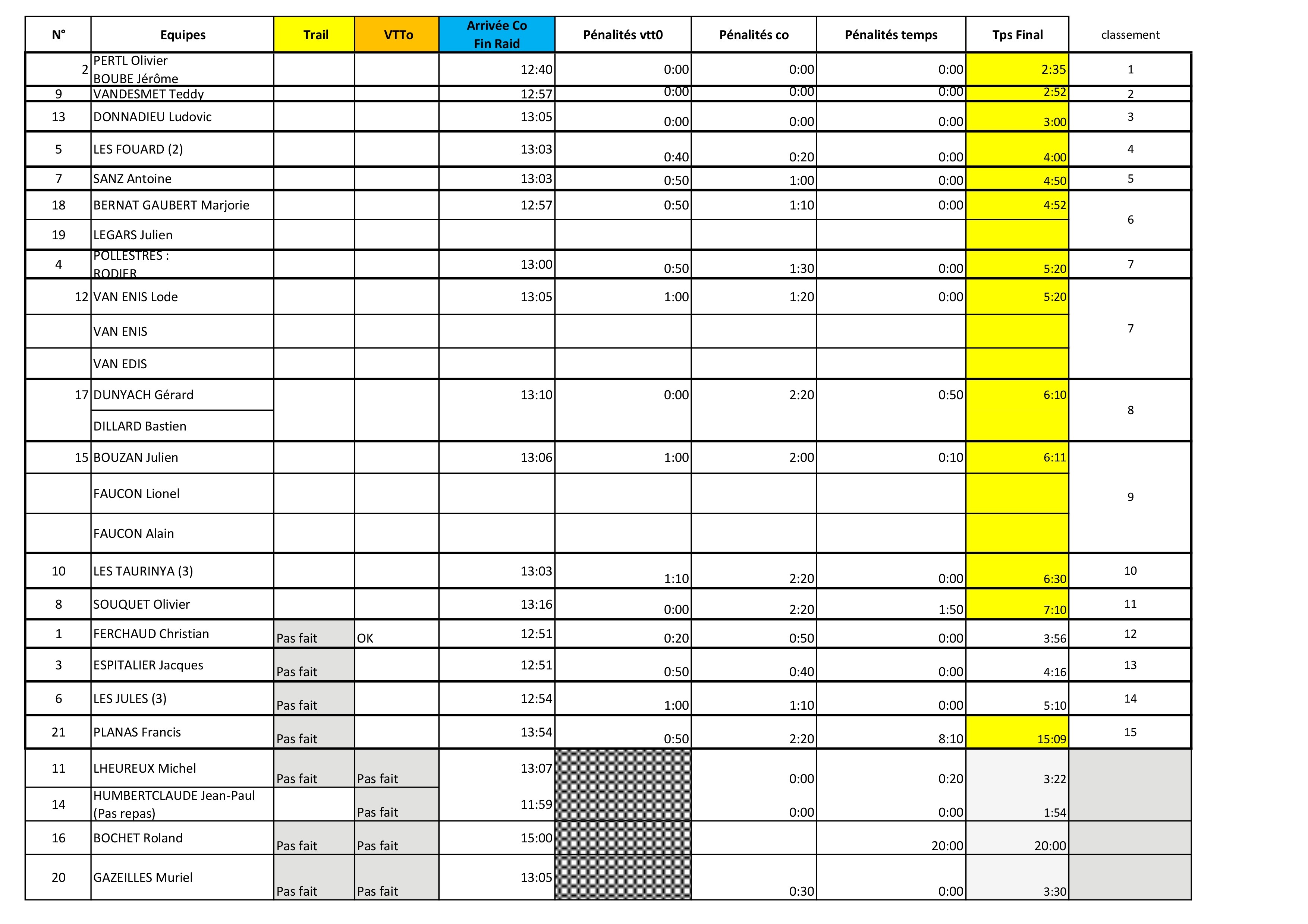 Résultats du raid de la vallée du Tech